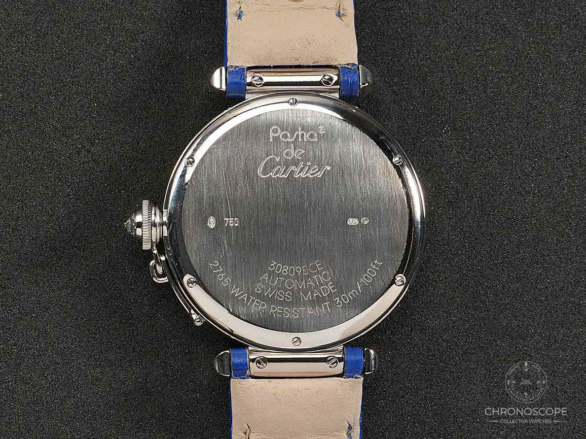 MODELL/REFERENZ: Cartier Pasha XL in massivem 18-karätigem Weißgold, Referenz 2765 WJ120251. Diese Uhr wird als Komplettset angeboten und wurde ursprünglich im Jahr 200X verkauft. Inventarnummer: SAS-34-41.