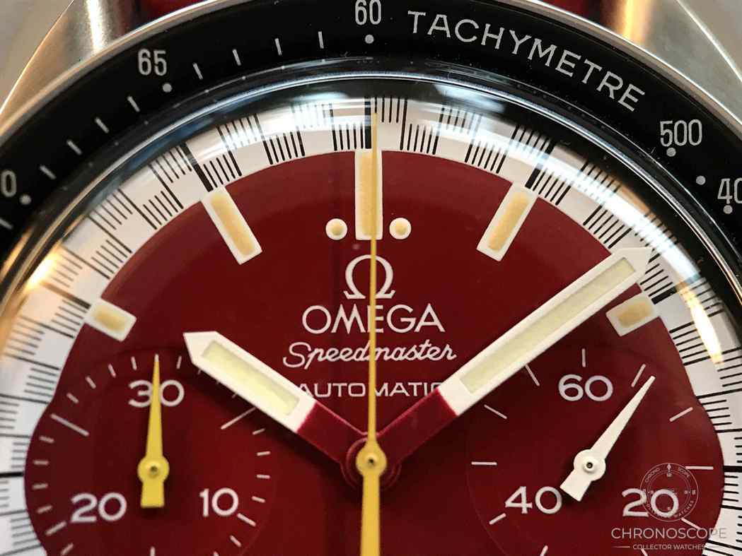 MODELL/REFERENZ: Omega Speedmaster Reduced, Ref. 3810.61. Die Seriennummer 55’414’315 datiert diese Speedmaster auf ca. 1999.